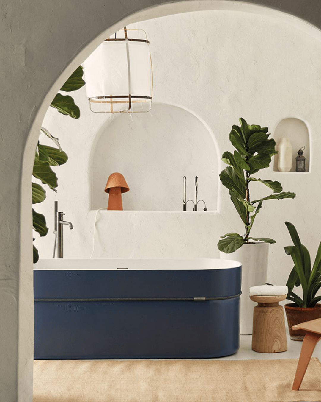Le contraste saisissant entre l'extérieur bleu sombre et l'intérieur blanc mat évoque une élégance raffinée, renforcée par la délicate séparation d'une corde, ajoutant une touche artistique et personnalisée à votre salle de bain. Cette corde, disponible en plusieurs finitions, souligne la jonction entre les deux tons, offrant une harmonie visuelle qui enchante les sens.