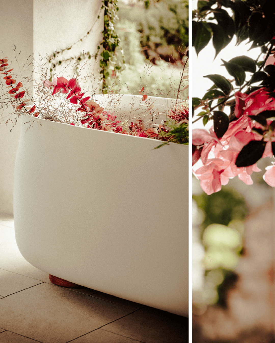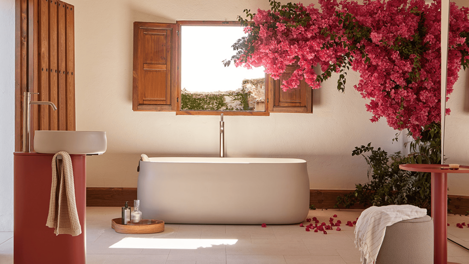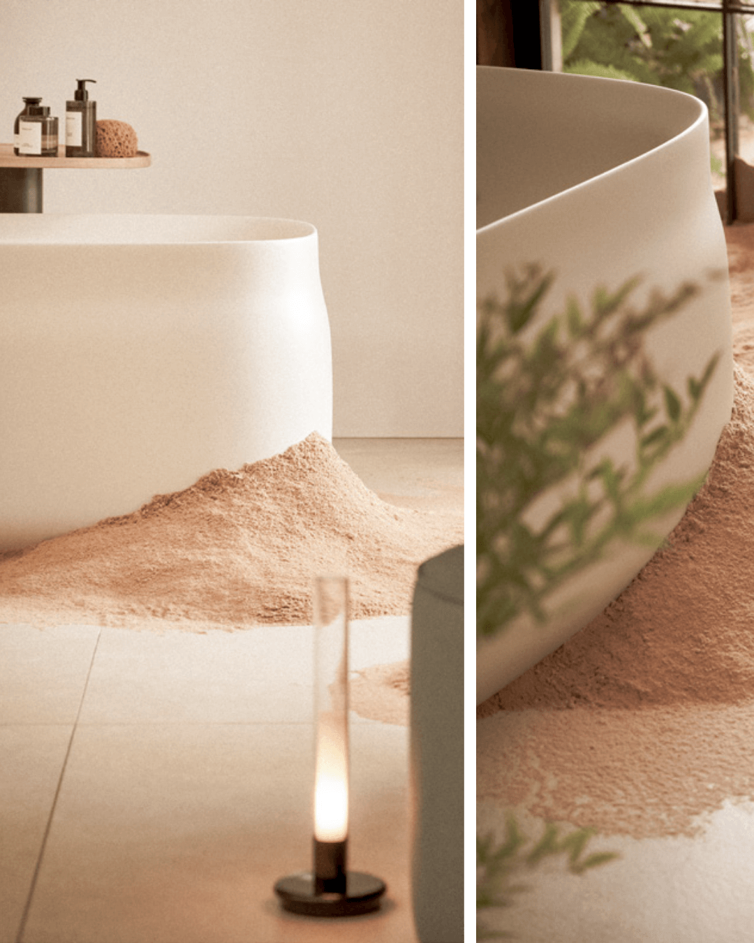 Pour une harmonie visuelle totale, notre baignoire phare, Duna Sand, est proposée dans une finition beige clair intégrale, à l'intérieur comme à l'extérieur.
