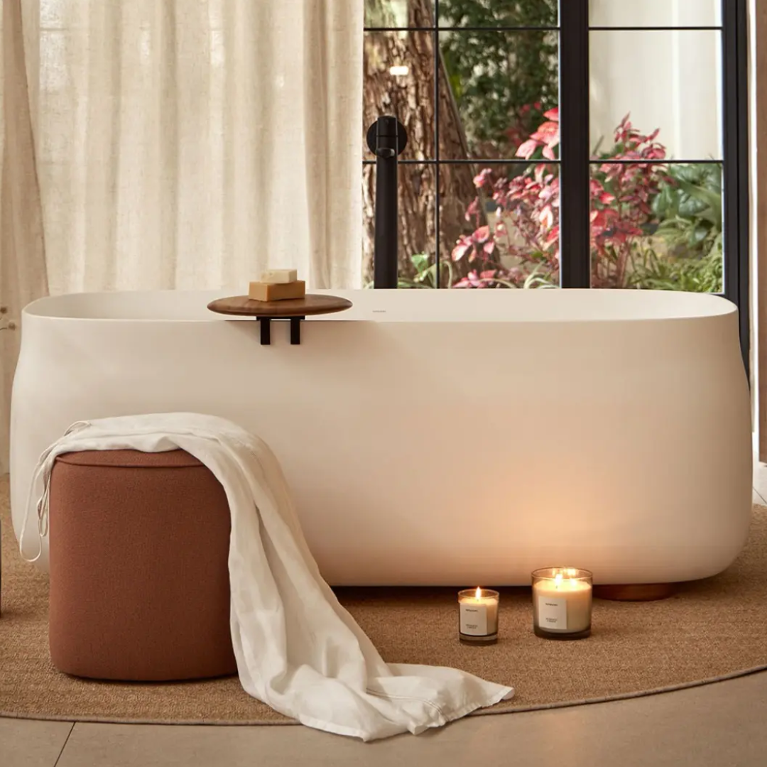 - Plateau de baignoire en bois Iroko : Un accessoire pratique et esthétique, idéal pour garder à portée de main vos essentiels de bain.